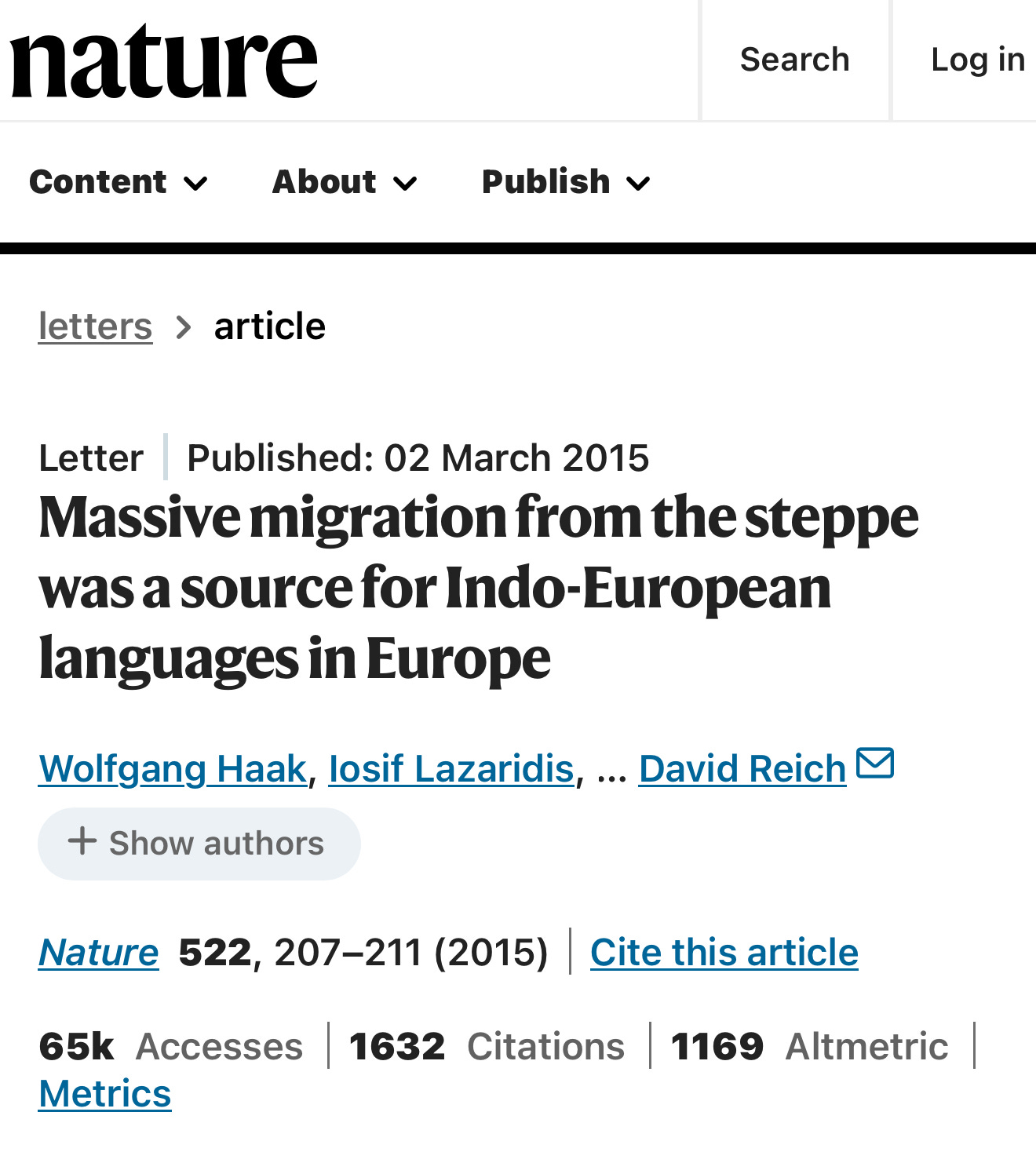 which is that we all come from this Yamna community in southern Ukraine in some meaningful sense, in the sense that, yes, we, and if you're listening to this, you are an Indo-European, understand an Indo-European language, And you probably have ancient Ukrainian ancestry within you if you're indigenous or relatively indigenous from anywhere in the space between Ireland and India and your ancestors weren't some of the Turkic. Uralian migrants who came, who founded the Finnish part of the Estonian and the Hungarian people, then chances are you have this genetic ancestry in you. But just by virtue of using an Indo-European language, if it's your native tongue,