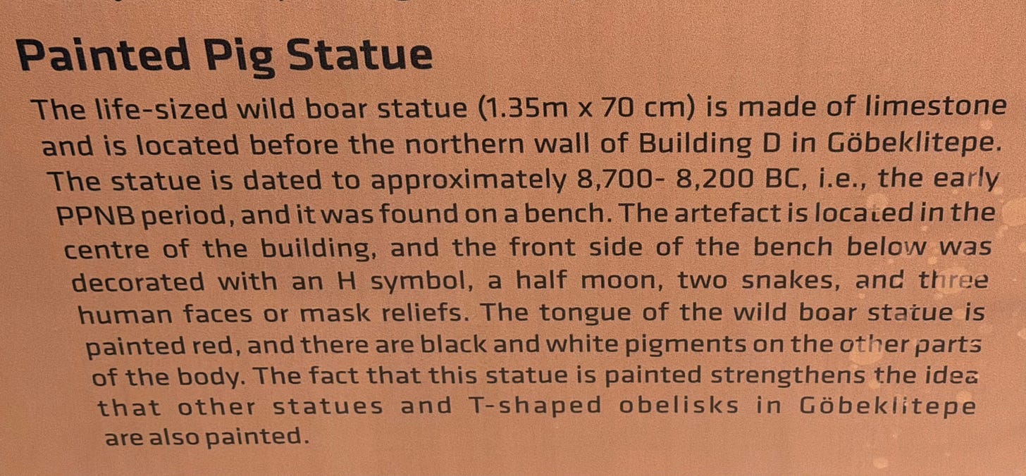Yesterday, I visited Urfa and explored an impressive museum that showcased artifacts from Göbekli Tepe, including lifelike statues of animals and possibly stone gods.